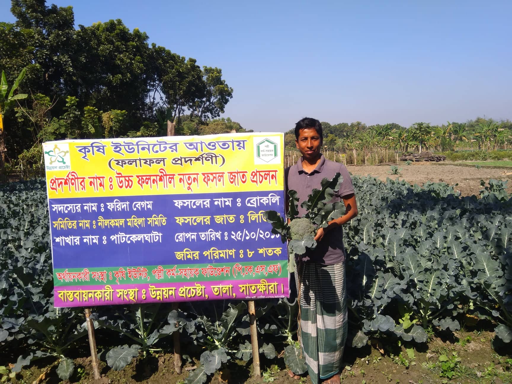 Unnayan Prochesta implemented Technology extension program by agriculture unit under Fisheries and Livestock unit at Tala upazila in Satkhira district with the fund of Palli karma-sahayak Foundation (PKSF). The objectives of this program are to help and involve income generating activities of south-west sea-based ultra-poor family and remove poverty to increase their knowledge, skill development through using sustainable technologies. All victory technologies under agricultural sector implement as a demonstration plot in farmer’s level to increase their awareness and extension to increase interest for the highest use of these sustainable developed Technologies to improve their livelihood status. Farmer’s skill ness increased through training, field day and cross visit and supplied loan for extension of technology. These programs are implementing in the southwest sea-based people’s need and demand. That is, the prime objective of this program is to decrease the poverty by using and extending success technologies in field level.
