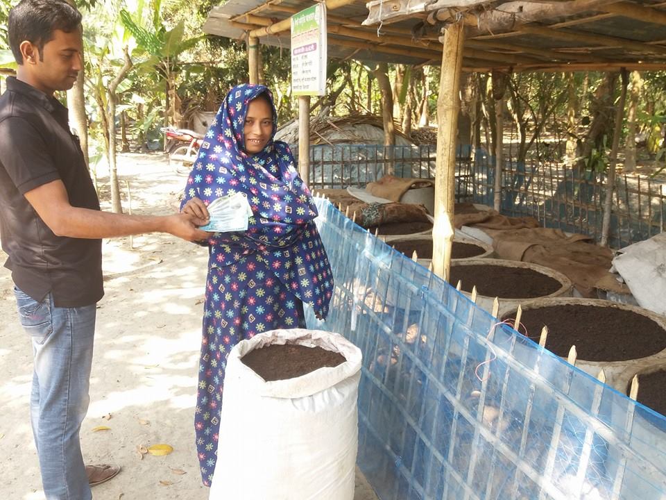 Tahmina Begum, the name of one woman engaged in action with her husband Shirajul Islam and two Child, she lives in Prosadpur village of Khalil Nagar Union under Tala upazila of Satkhira district. Since all basic facilities, including herbal and medical services were inadequate for her husband, often have to work as a female worker in other fields. Continuous efforts have been made to bring about the lack of natural disadvantages. At one stage, Tahmina Begum was appointed as a member of TuliMahilaSamity of Khalil Nagar branch and tried to develop fate by joining it with various income generating activities by accepting small loans. Under the initiative of the development effort of the development efforts, under the guidance of the creative management based cow, under the development efforts of the Dairy Clusters, a grant of 16000 / = (16 thousand Taka) is given as grants for production, use and marketing of worm. On 26.03.2017, he started the canopy fertilizer in 40 Nada / Chari. Due to the absence of adequate dung because of a cattle, they used to collect cow dung from outside and use it for fertilizer production. On 08.05.2017, he collected 18 maund worm fertilizers from his farm fertilizer farm and sold 400 / = money at a total of Rs. 7200 / = at heart rate. For supply of adequate dung, he has received a loan of 30000 / = from the agency and bought a cow. Thus, every month he sells worms along with 18-20 manure from the farm. So far, he sells 102 manure fertilizers and sells 40800 / = and worms and gives a total of Rs. 71,250 / = including 30450 / = of the money. With the plan to increase his farm, he has already started the fertilizer production by making three cell walled houses with the money and purchasing another cow for adequate dung. At present, there are 03 cows in his goat and he has been able to bring his family prosperity with the help of improving his fortune by generating 10-12 thousand taka by selling fertilizers and worms every year from the worm farm.